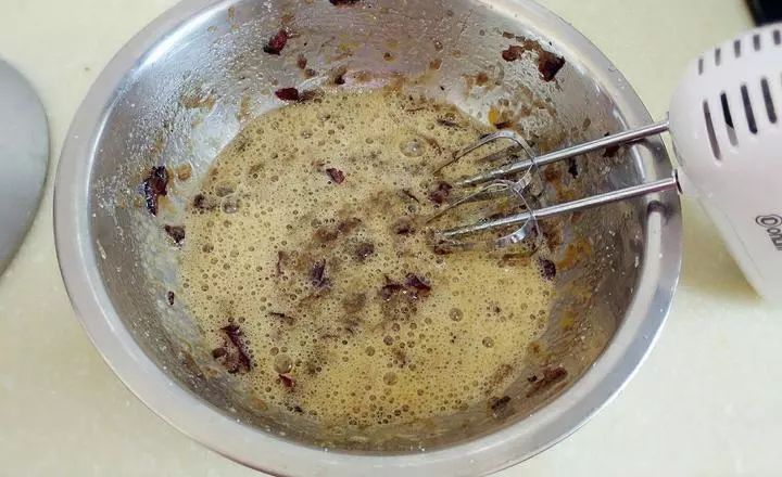 红枣捞出加入100克白糖用打蛋器打至白糖化红枣烂。